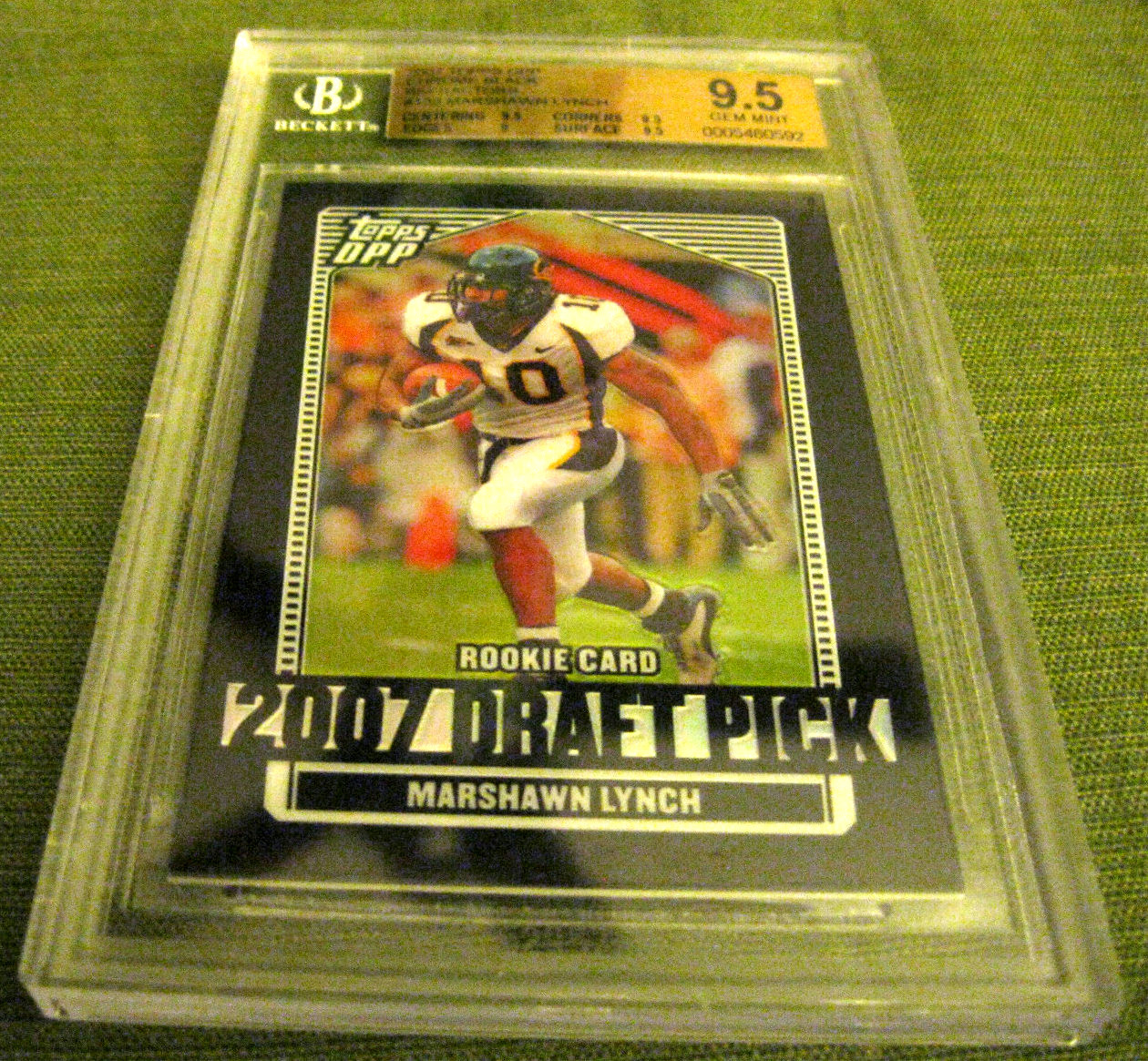 The item you are buying an authentic TOPPS DPP BLACK REFRACTOR ROOKIE CARD#191 GRADED GEM MINT BGS 9.5 ON THE CARD OF MARSHAWN LYNCH FROM 2007 TOPPS DRAFT PICKS&PROSPECTS. This BLACK REFRACTOR ROOKIE Card is Authenticated by TOPPS DPP,GRADED GEM MINT BGS 9.5 ON THE CARD BY BECKETT GRADING SERVICE, please see scan for details!