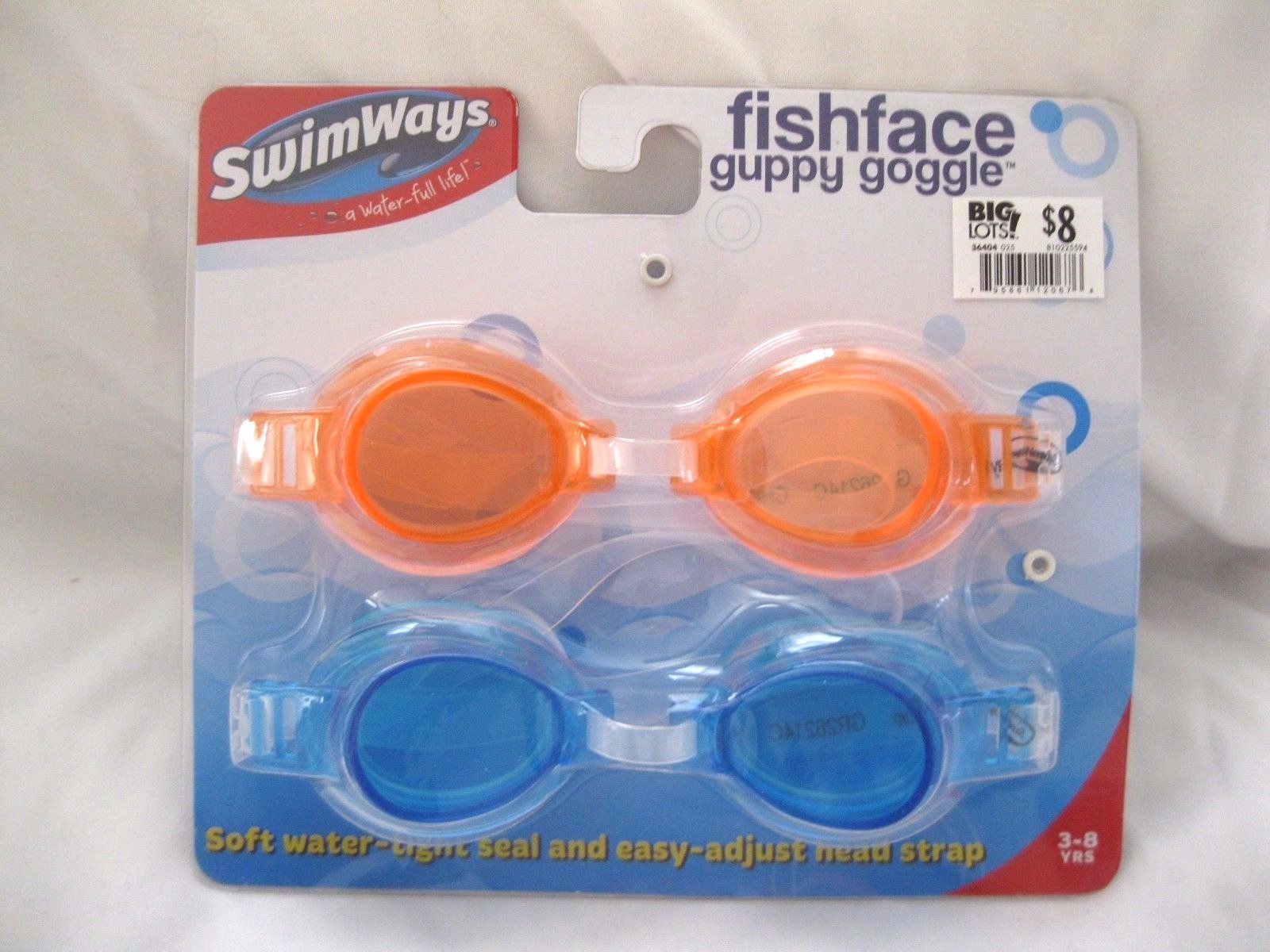 • 2 Pairs of Fishface Dolphin Swim Goggles Soft Eye Cups Kids Adult-Brand New in Package!