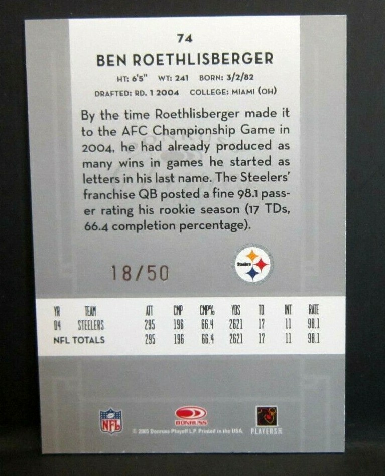 Ben Roethlisberger 2006 Donruss Classics Timeless Tributes#18/50!Steelers QB HOF