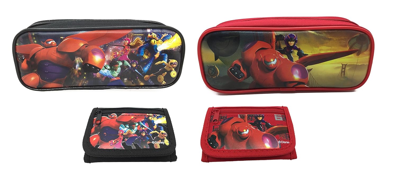 BIG HERO 6 RED AND BLACK WALLETS AND PENCIL CASES POUCHES COMBO-BRAND NEW!