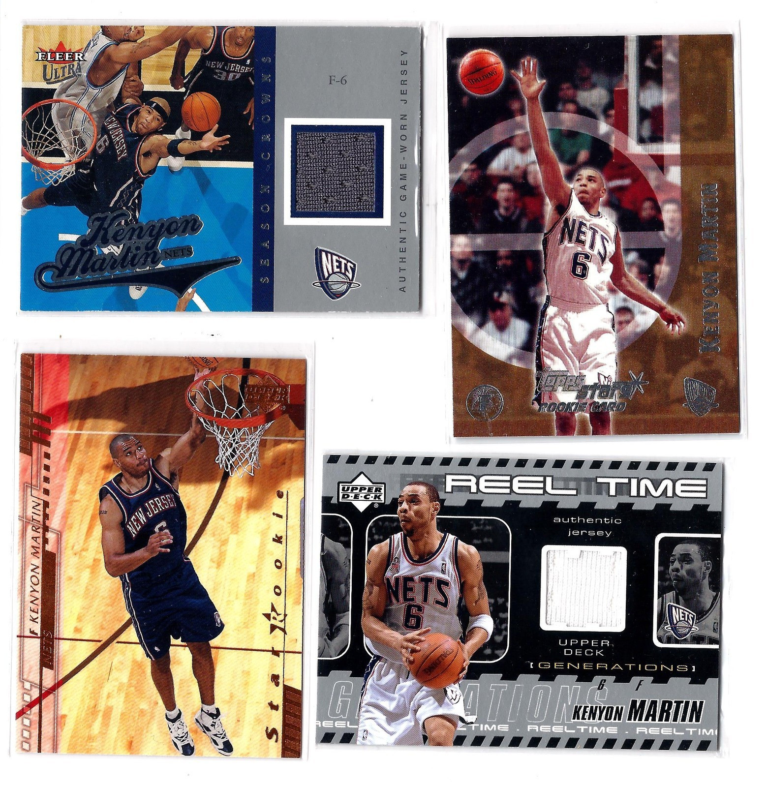 Kenyon Martin ROOKIE 2000/01 2 CARD ROOKIE & 2 CARD GAME WORN JERSEY/PATCH LOT