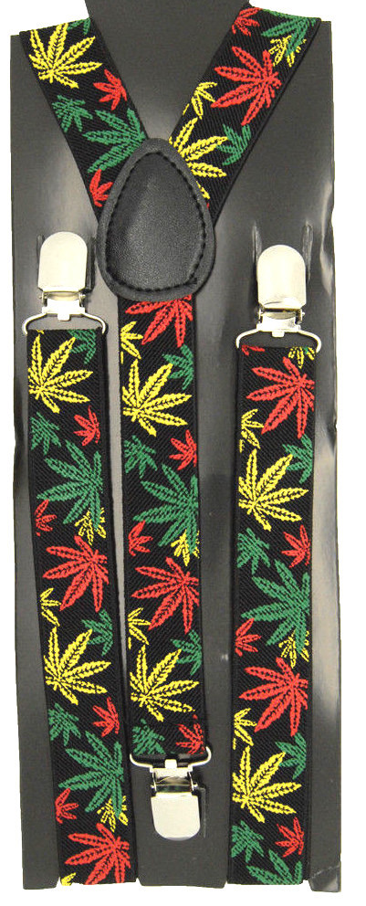 • MULTI COLOR MJ WEED MARIJUANA LEAVES HEAVY DUTY 1" WIDE Y-STYLE SUSPENDERS-BRAND NEW FACTORY SEALED!