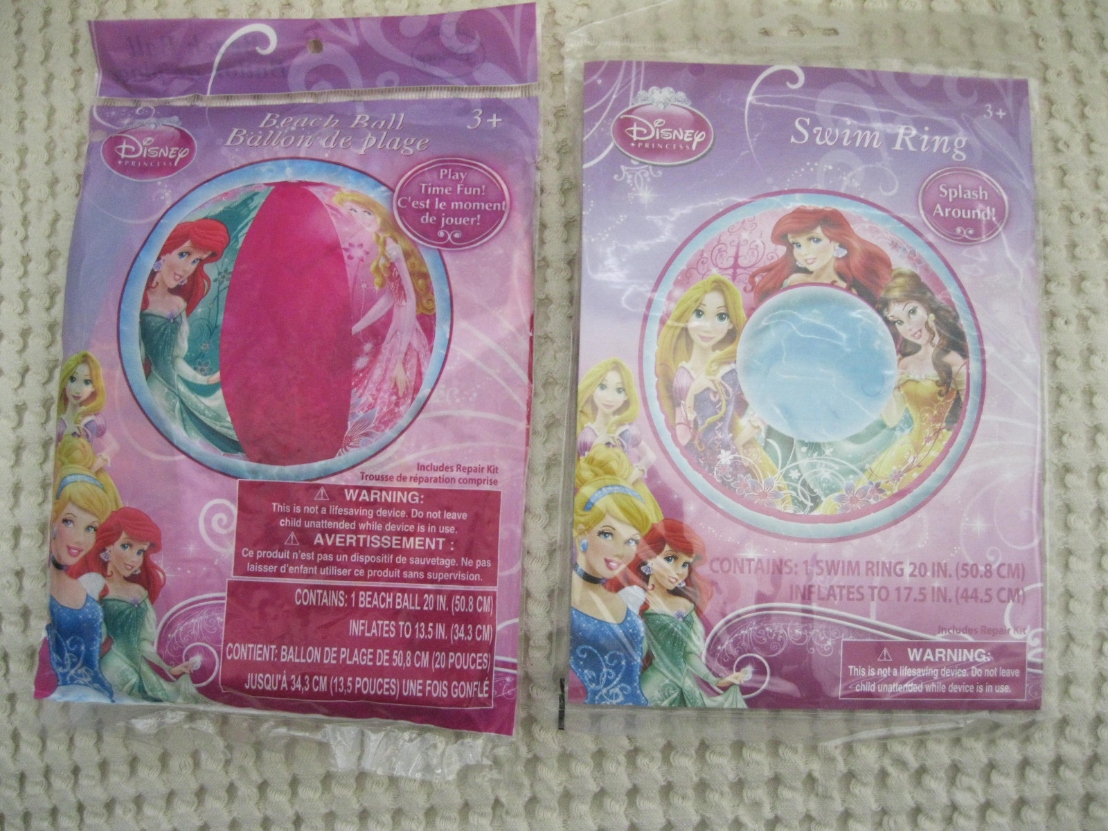 Princess+Friends 20" Beach Swim Ring + Beach Ball by Walt Disney-New in Pkgs!
