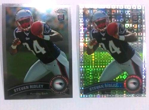 THESE ROOKIES ARE TRUELY RARE FROM 2011 TOPPS CHROME ROOKIE CARDS TO FIND!!! A MUST HAVE FOR ANY STEVAN RIDLEY OR NEW ENGLAND PATRIOTS COLLECTOR!