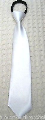 "HIGH QUALITY" AFFORDABLE 11 1/2" PRE-TIED NECK TIE. THE NECK TIE IS MADE OF POLYESTER. This pre-tied tie simply zips open, and zips up closed giving you the perfect knot every time!