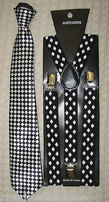 BLACK AND WHITE CHECKERS DIAMONDS ADJUSTABLE HEAVY DUTY 1" WIDE Y-STYLE SUSPENDERS-BRAND NEW FACTORY SEALED!
