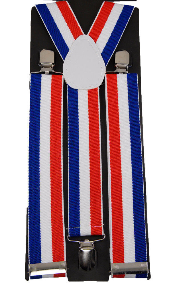 THICK 1 1/2" RED WHITE BLUE STRIPES Adjustable Y-Style Back suspenders-New!