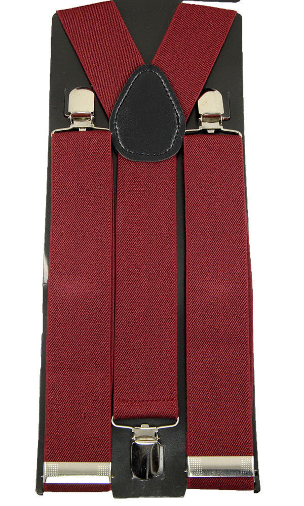 - SOLID BURGUNDY HEAVY DUTY 1 1/2" WIDE Y-STYLE ADJUSTABLE SUSPENDERS-BRAND NEW FACTORY SEALED!