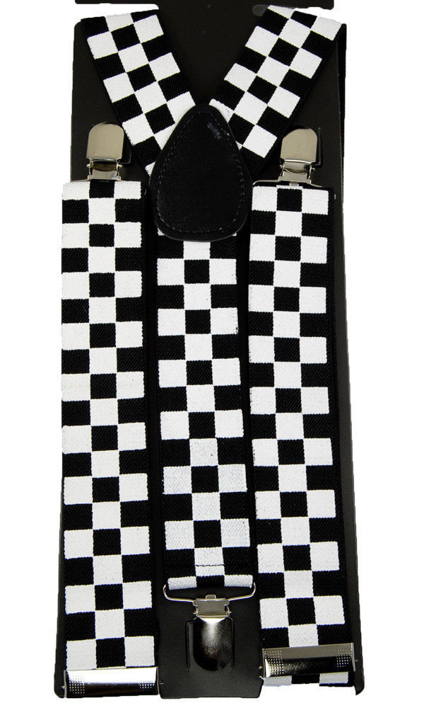 - WHITE AND BLACK CHECKERED CHECKERS HEAVY DUTY 1 1/2" WIDE Y-STYLE ADJUSTABLE SUSPENDERS-BRAND NEW FACTORY SEALED!