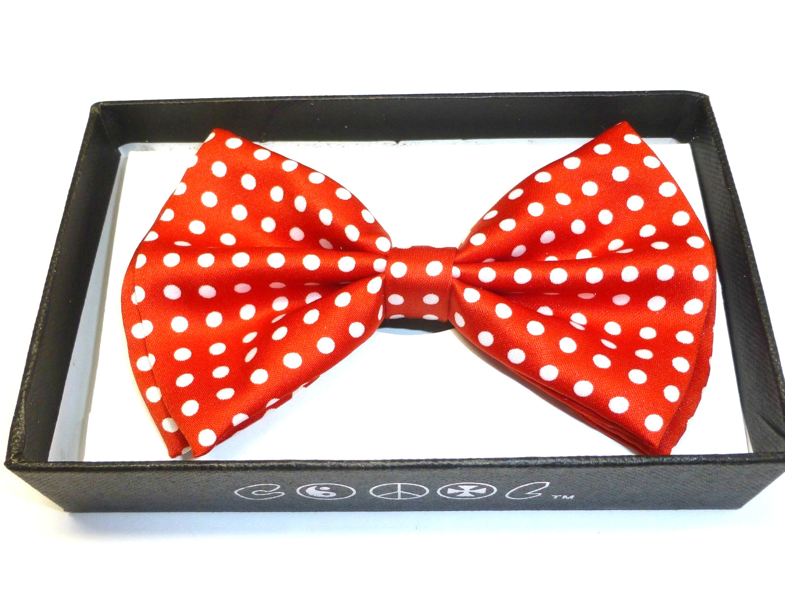 • UNISEX FASHION RED WITH WHITE POLKA DOTS ADJUSTABLE ALL POLYESTER SILK BOWTIE-NEW IN FACTORY BOX!