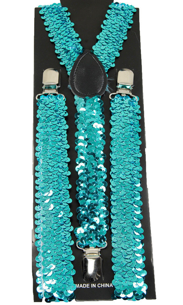 Unisex Aqua Blue Turquoise Sequin Sequence Adjustable Y-Style Back suspenders