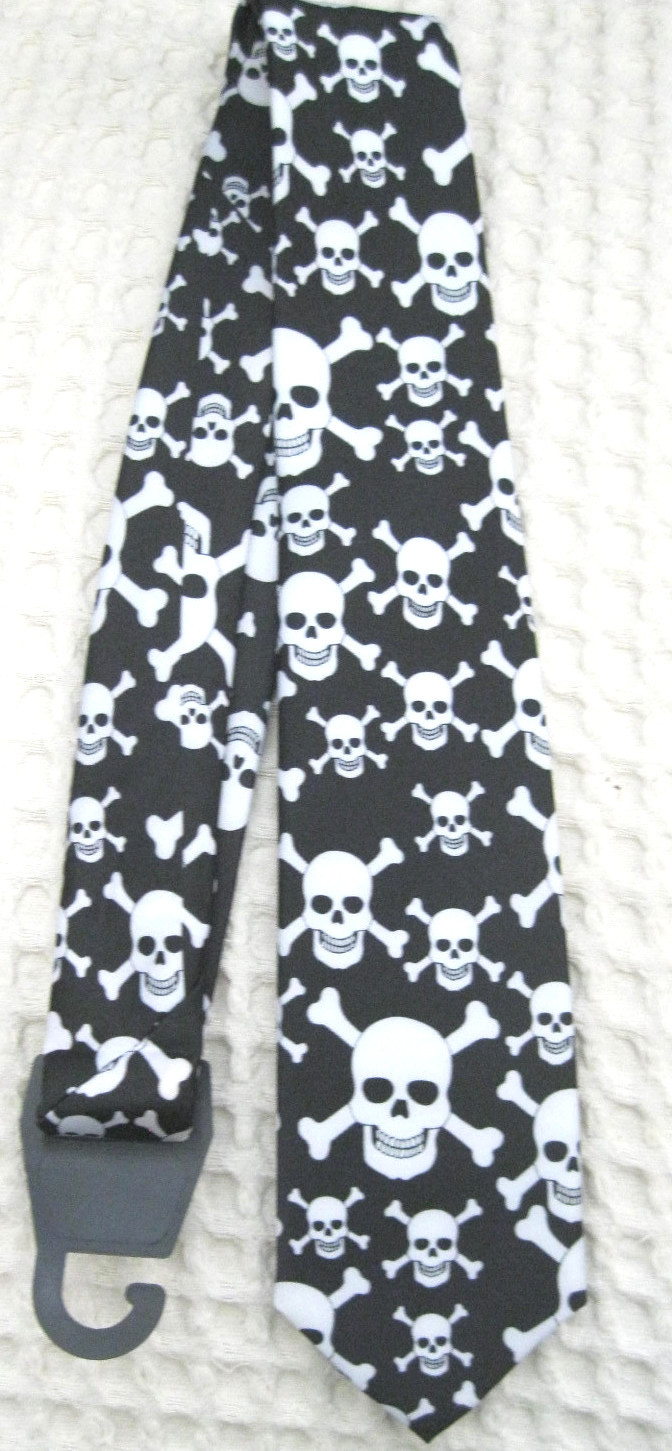 Unisex Black with White Skulls & Crossbones Neck tie 56" L x 2" W-Skulls Tie-New