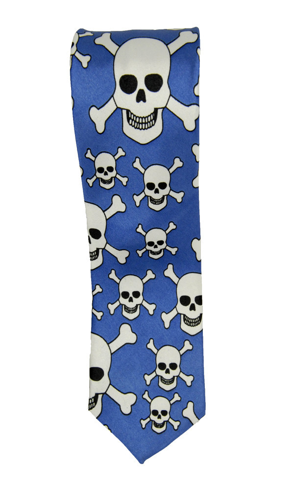 Blue with black outlined White Skulls and Crossbones Neck Tie-Factory Sealed!!!
