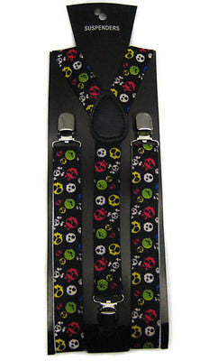 MULTI COLOR ALIEN FACES HEAVY DUTY 1" WIDE Y-STYLE SUSPENDERS-BRAND NEW FACTORY SEALED!