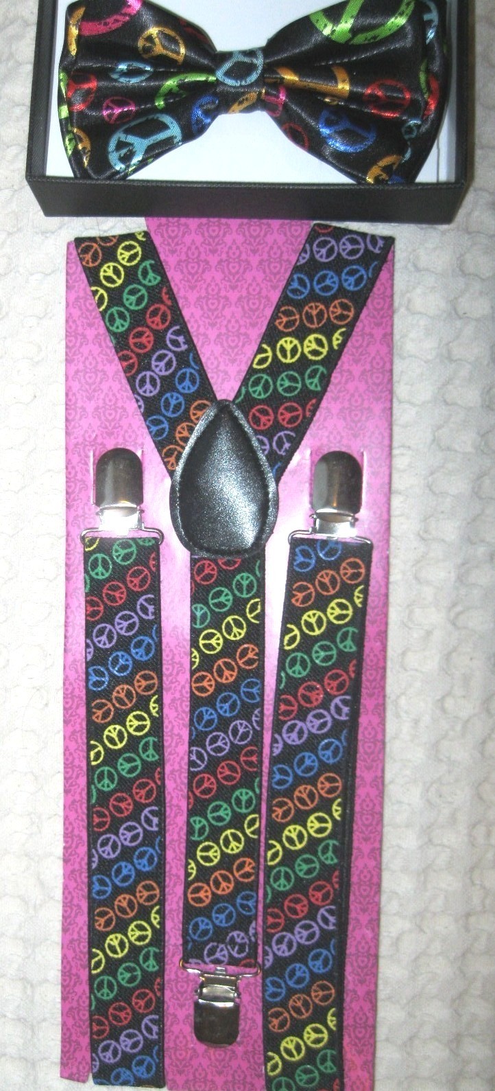 - BLACK WITH MULTI-COLOR PEACE SIGNS
