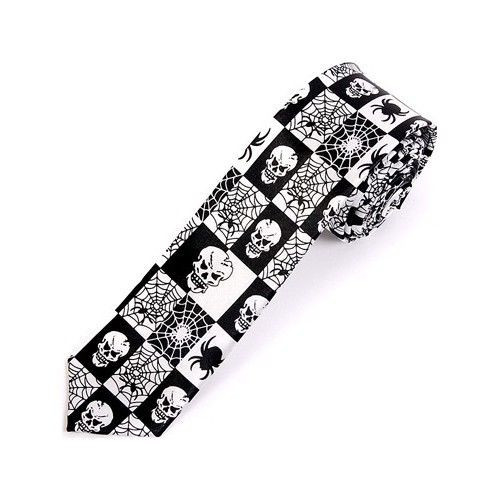 Unisex Men's Black and White Skulls,Spiders,and Spider Webs Neck Tie-Factory Sealed!!!