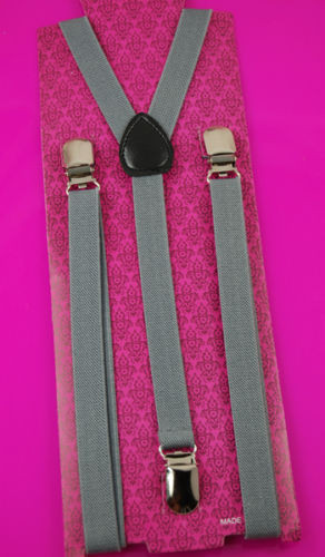 GRAY GREY SILVER HEAVY DUTY 3/4" WIDE Y-STYLE SUSPENDERS-BRAND NEW FACTORY SEALED!
