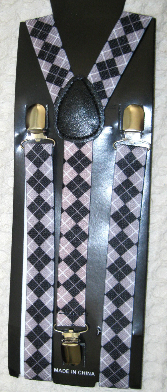 BLACK,WHITE AND GRAY GORGOYLE PATTERN HEAVY DUTY 1" WIDE Y-STYLE SUSPENDERS-BRAND NEW FACTORY SEALED!