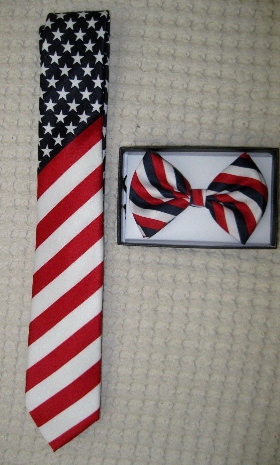 US Flag American Flag 3" Neck Tie & US Patriotic Flag Stripes Adjustable Bow Tie