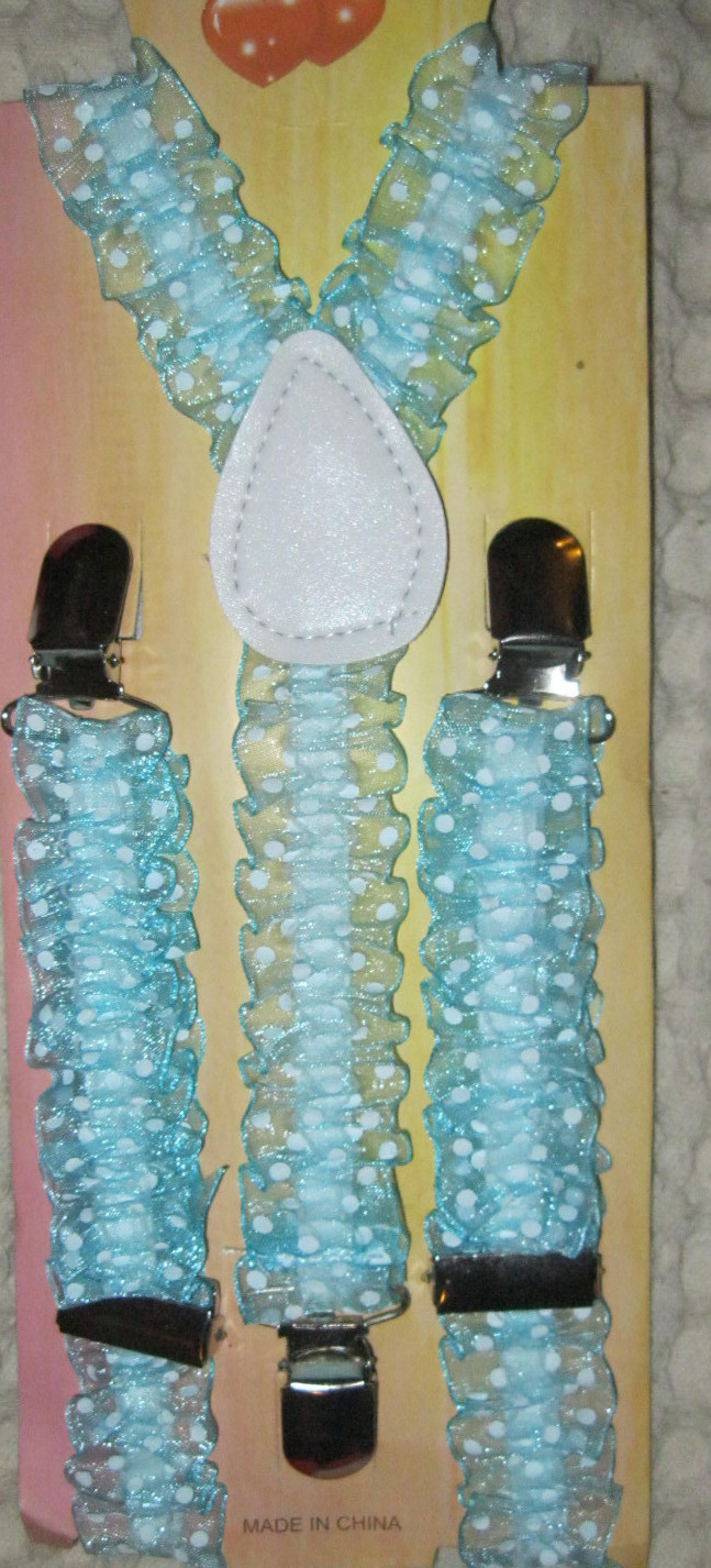White Blue Lace Kids Boys Girls Y-Style Back Adjustable suspenders-New Package!