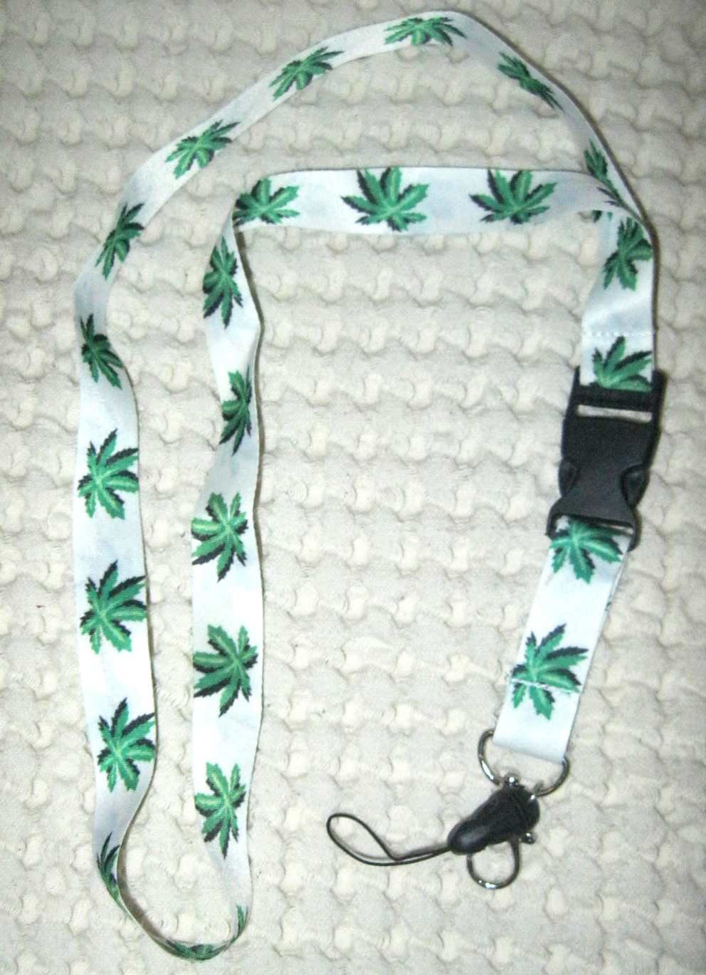 This is a White with Green MJ Marijuana Weed Leaves Design  15" Lanyard for your Keys and Badge ID holder. Brand New without Tags!